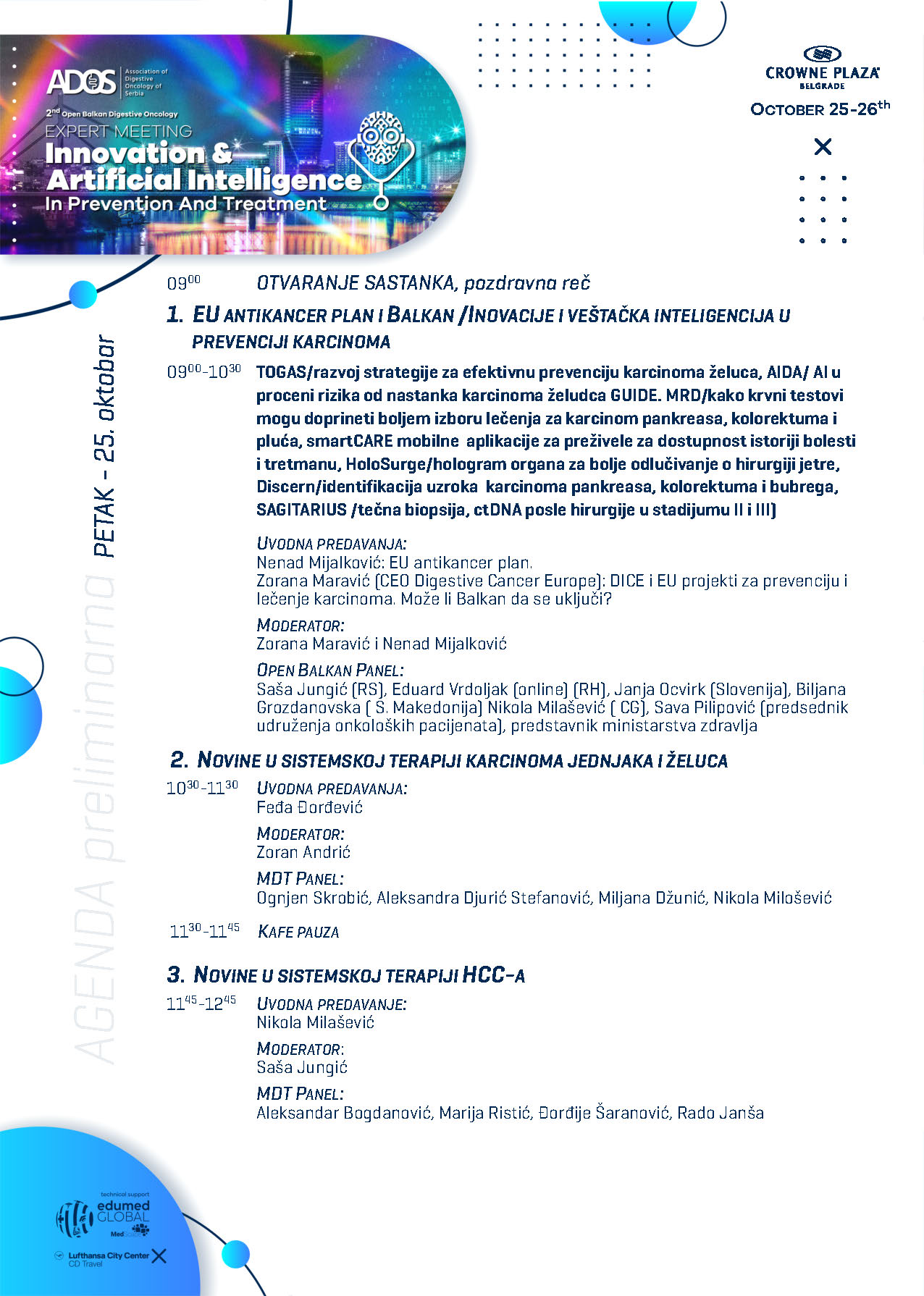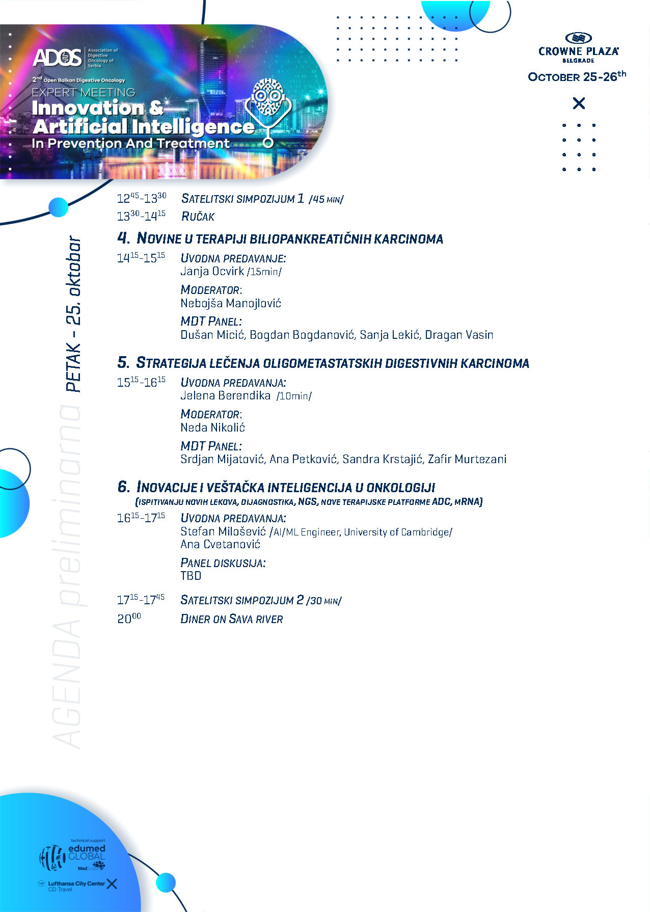 Preliminarni program uključuje raznovrsne sesije, sa uvodnim izlaganjima vodećih onkologa, panel diskusijama o najnovijim dostignućima u digestivnoj onkologiji i radionicama o inovativnim dijagnostičkim i terapijskim tehnikama. Učesnici će imati priliku da se povežu sa kolegama, diskutuju o izazovnim slučajevima i istraže nove pravce istraživanja.